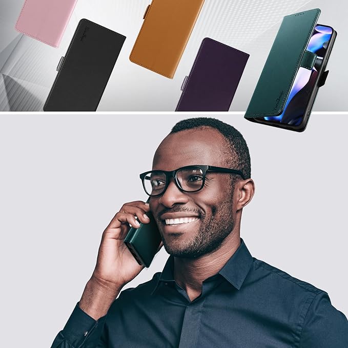 - 【High Quality Leather】: Made of the finest quality PU leather texture, superb cutting process with craftsmen's pure hand sewing to create the Leather Wallet Phone Case. Premium smooth fine grain pattern surface does not stick fingerprints, easy to clean, wear-resistant . Shockproof, dustproof, perfect protection for cell phone body and screen. Luxurious and elegant appearance suitable for any occasion and good safety cushioning performance.