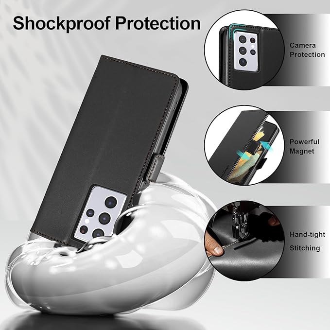 - 【Compatible with Samsung Galaxy S21 Ultra 5G】:This Leather wallet case fits perfectly on the corresponding phone's sensors, buttons and camera. Sensitive keys, smooth fingerprint unlock, clear earpiece. Please make sure your phone is Samsung Galaxy S21 Ultra 5G before purchase.