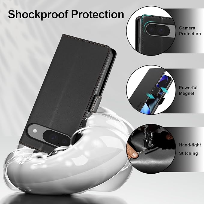 - 【Compatible with Google Pixel 9/9 Pro 5G】:This Leather wallet case fits perfectly on the corresponding phone's sensors, buttons and camera. Sensitive keys, smooth fingerprint unlock, clear earpiece. Please make sure your phone is Google Pixel 9/9 Pro 5G before purchase.