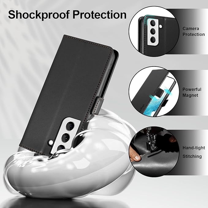 Wallet Flip Case for Samsung Galaxy S22 5G - [RFID Blocking] Luxury PU Leather Card Holder Magnetic Phone Cover with Kickstand,Shockproof Protective Case,Black