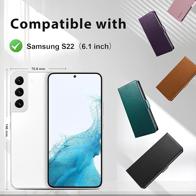 - 【Compatible with Samsung Galaxy S22 5G】:This Leather wallet case fits perfectly on the corresponding phone's sensors, buttons and camera. Sensitive keys, smooth fingerprint unlock, clear earpiece. Please make sure your phone is Samsung Galaxy S22 5G before purchase.
