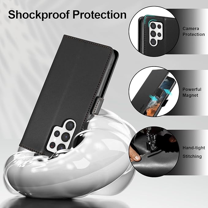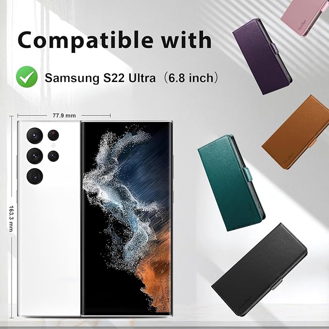 - 【Compatible with Samsung Galaxy S22 Ultra 5G】:This Leather wallet case fits perfectly on the corresponding phone's sensors, buttons and camera. Sensitive keys, smooth fingerprint unlock, clear earpiece. Please make sure your phone is Samsung Galaxy S22 Ultra 5G before purchase.