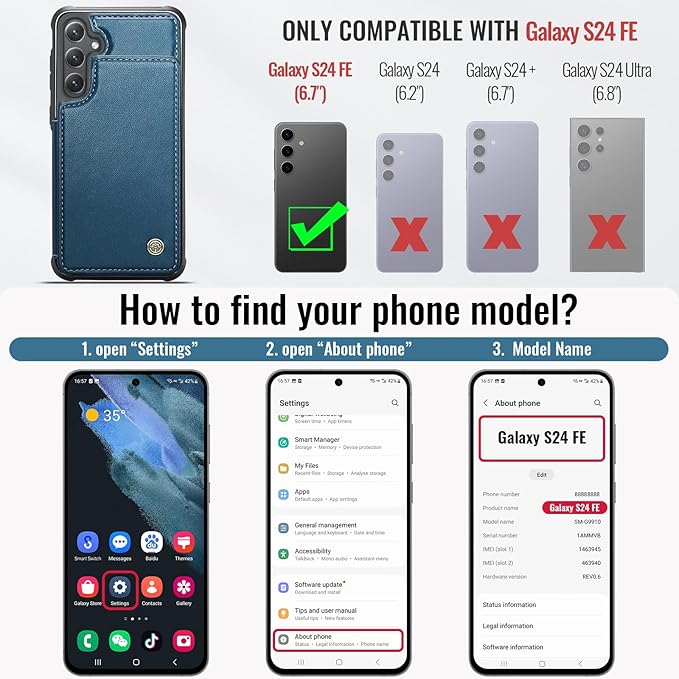 - Upgraded for RFID Blocking Technology: Equipped with RFID blocking technology, our for Galaxy S24 FE Case is designed to protect your cards’ information from theft with an innovative blocking material; It’s perfect for people who travel or shop frequently