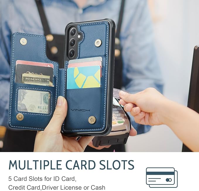 Vinich for Samsung Galaxy S24 FE Wallet Case with Card Holder, RFID Blocking Credit Slots Kickstand Shockproof Phone Cover for Women Men, Blue
