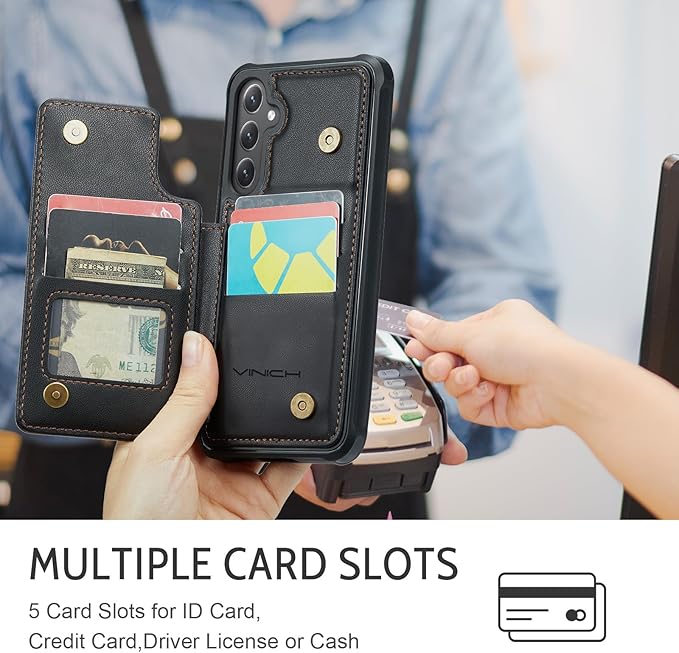 Vinich for Samsung Galaxy S24 FE Wallet Case with Card Holder, RFID Blocking Credit Slots Kickstand Shockproof Phone Cover for Women Men, Black