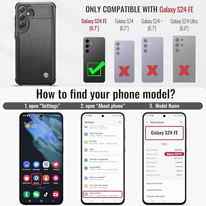 - for Samsung S24 FE Case with Card Holder: The for Galaxy S24 FE case is designed with card slots for drivers license, insurance cards, door access card, debit cards, etc; The case is easy to hold and remove, so you don’t need to take bulky purse to outdoor; This case for S24 FE is suitable for all ages of women & men
