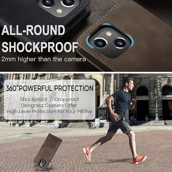 for iPhone 15 Plus Case, Flip Wallet Leather Case with Card Holder Magnetic Closure Shockproof Kickstand Protective Phone Cases Cover for iPhone 15 Plus, Coffee