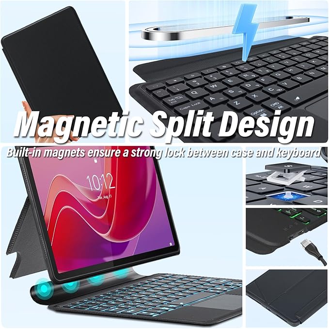 Backlit Touchpad Keyboard Case for Lenovo Tab M11 2024 11 Inch, Backlight Multi-Angle Kickstand,Portrait/Landscape Stand Detachable Magnetic Cover Case for Lenovo Tab M11 11” 2024(TB330FU/TB330XU)