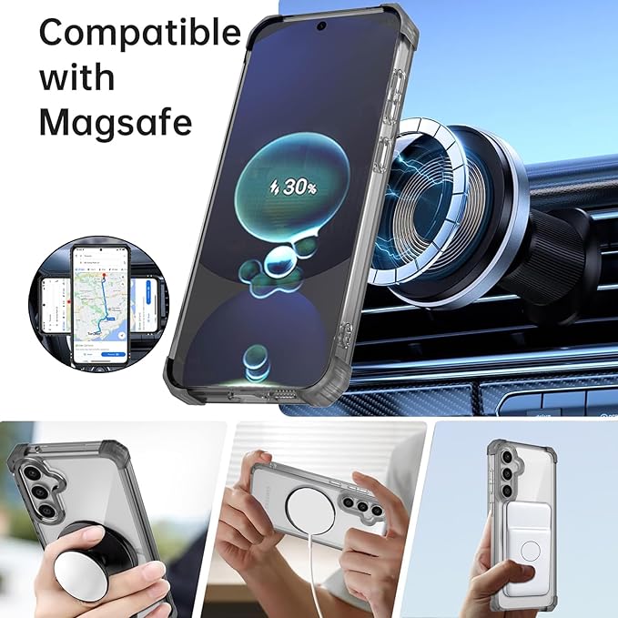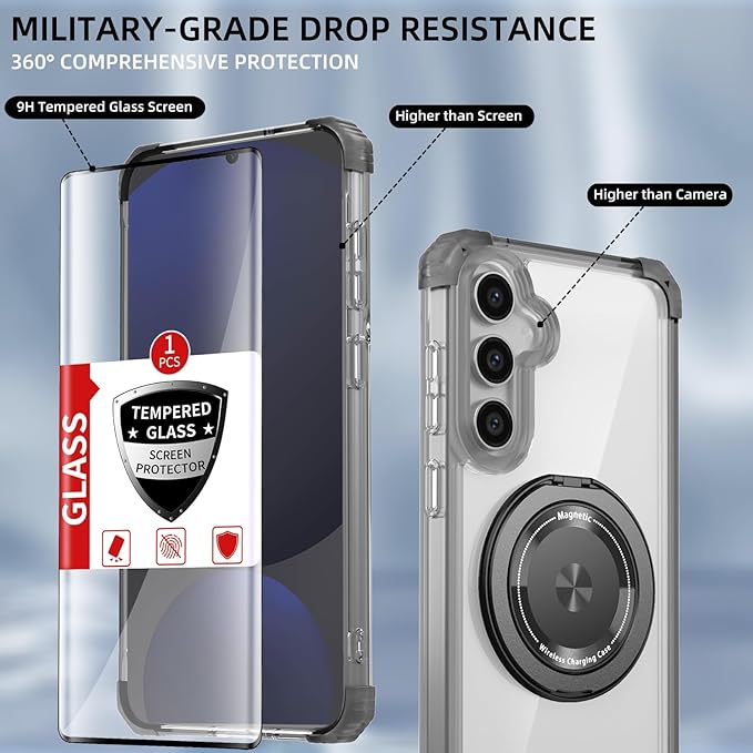 - [Slim Design & Magnetic Stand]Samsung Galaxy S24 FE Magnetic case is made of imported material, keeping it thin and light, the non-slip material on the side provides excellent grip. In addition, the case comes with Magnetic Stand, which provides unlimited convenience and unlocks more possibilities for your phone.Support your phone vertically or horizontally to watch a movie, attend an online meeting, Facetime, or simply put your phone/apps in landscape mode.