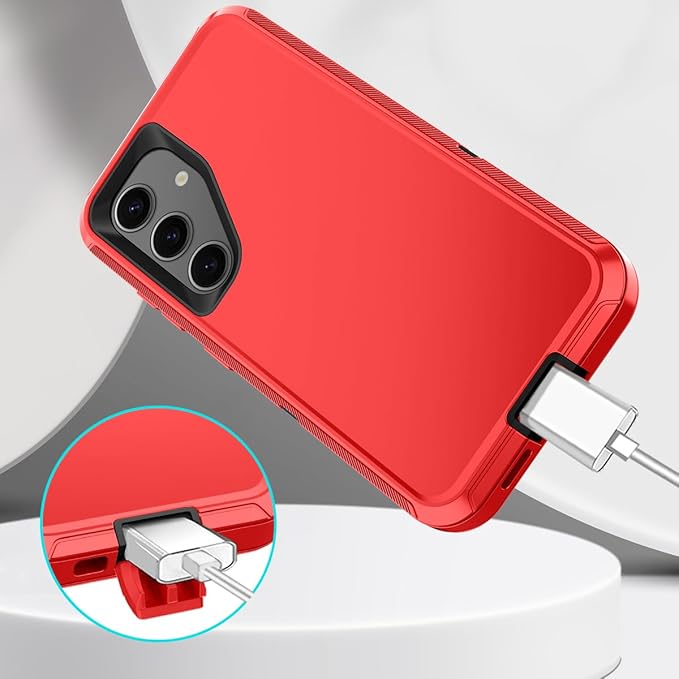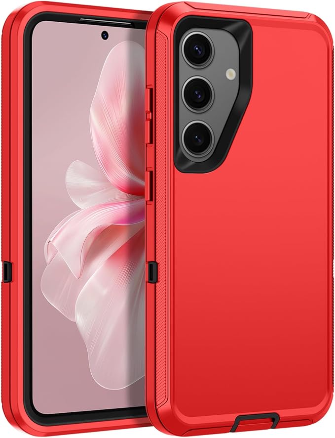 for Samsung Galaxy S24 Plus Case Heavy Duty Protective Shockproof Dropproof 3-Layer Full Body Protection [Without Screen Protector] Tough Rugged Case for Galaxy S24 Plus,Red/Black