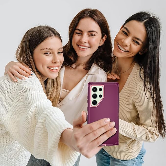 for Samsung Galaxy S24 Ultra Case Heavy Duty Protective Shockproof Dropproof 3-Layer Full Body Protection [Without Screen Protector] Tough Rugged Case for Galaxy S24 Ultra,Purple/Pink
