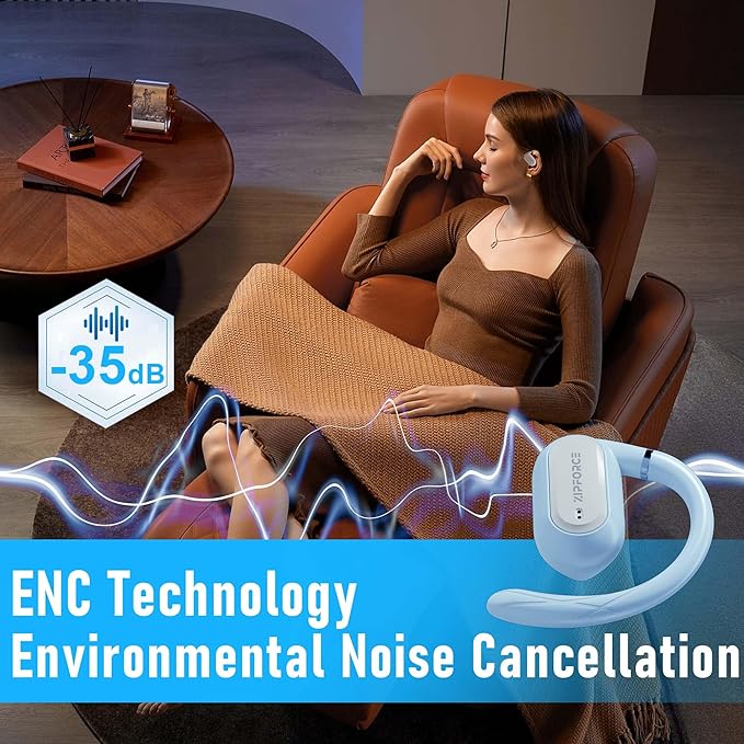 ZIPFORCE True Wireless Earbuds, Open-Ear Bluetooth 5.3 Headphones 4-Mics ENC Clear Call, OWS Bluetooth Earbuds Touch Control, IPX6 Waterproof TWS, Light-Weight Earphones