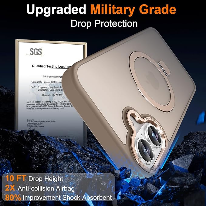 Magnetic for iPhone 16 Case with Ring Stand, [10 FT Drop Protection] [Velvety Touch] Slim Translucent Matte Back Shockproof Phone Case for iPhone 16 6.1'', Bronze