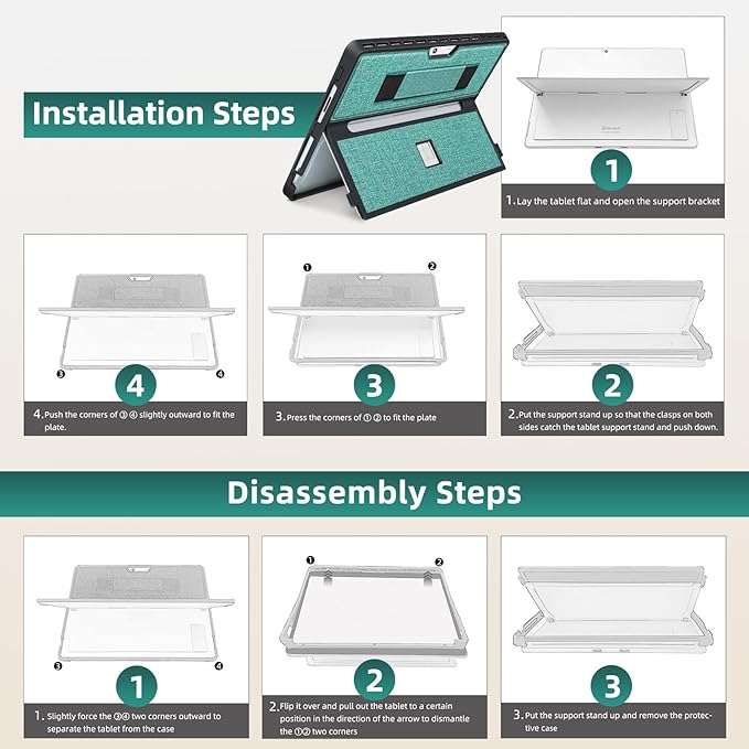 - 【COMPATIBILITY】Upgraded cover to an all-in-one case so you don't have to worry about the back cover falling off. Designed for Microsoft Surface Pro 11, Surface Pro 10, Surface Pro 9, and Surface Pro 8 13-Inch with precise cutouts. It provides easy access to all controls. Be sure to check the tablet model number before purchasing.