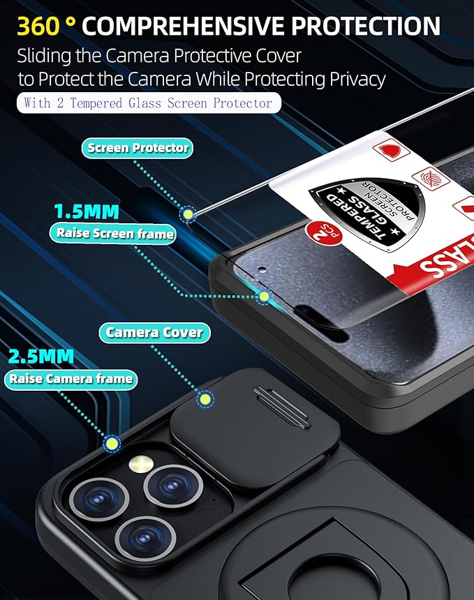 - [Sliding camera cover protection]for iPhone 15 Pro Case with sliding camera cover protection,delicate slide cover protrudes from the camera to protect daily use from sscratches and bumps, the slide cover can perfectly hide the camera, not only improving protection and security , while protecting your privacy.