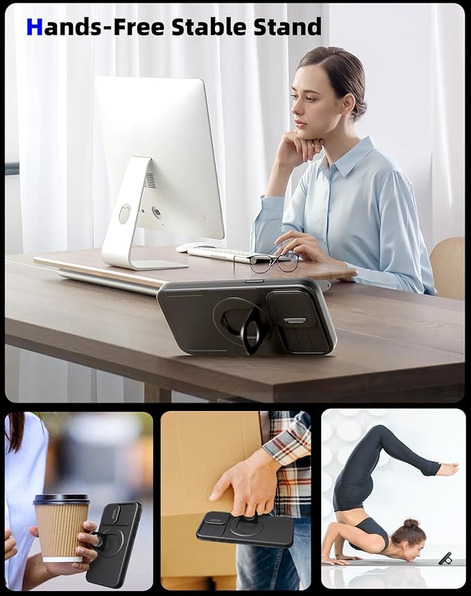 - [Compatible with MagSafe & Super Magnetic] for iPhone 15 Pro Case magnetic made of 38 upgraded powerful N52 magnets, the built-in magnetic ring can strengthen the Magnet connection to be compatible with MagSafe accessories such as wireless charger, magnetic car mount, magnetic battery bank, magnetic wallet etc. Perfectly aligned magnetic ring make wireless charging faster and easier without removing the case.The versatile kickstand on the back of the phone case folds back into a groove when unused.
