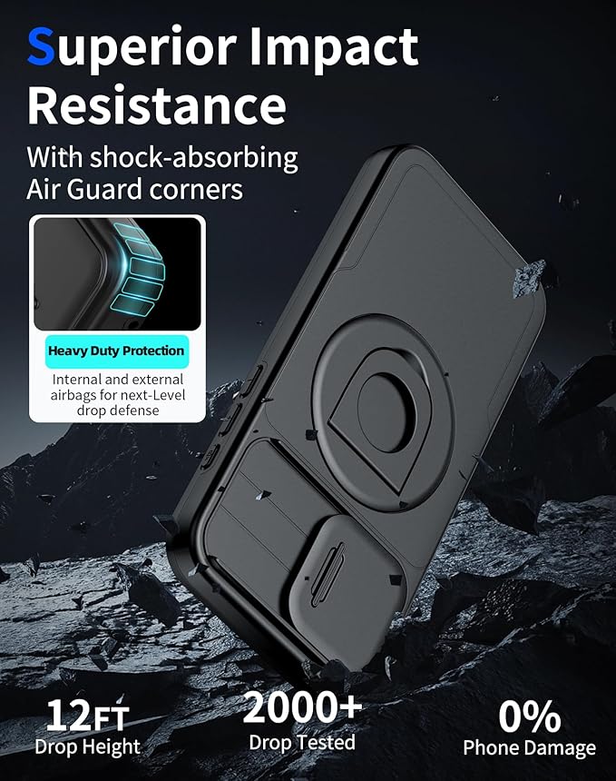 - [3X Military Grade Protection] Our phone case is enduring over 4,500 12-feet drop tests with the phone intact. The double-cushioned structure absorbs a whopping 98% of impact force during drops. Both the camera and screen are thoroughly protected.It is made of shock-absorbing rigid PC and soft TPU materials, and features a dual-layer protective design that absorbs and deflects shock when for iPhone 15 Pro.