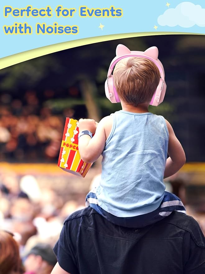 - 【Adjustable Headband & DIY Fun】: The cute cat ear noise cancelling headphone for kids' adjustable headband accommodates toddlers, children, teenagers, as well as adults. The package includes 2 stickers for personalization, letting your child’s creativity shine while ensuring comfort and full protection! Tips: If too tight, place it on a size 3 soccer ball for 4 hours to loosen.