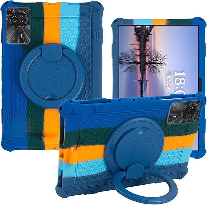 Tablet Case for 11 inch Teclast T50HD Soft Anti-Stress Silicone Case with 360° Rotate Stand/Pencil Holder/Shoulder Strap/Pen for Teclast/Lenovo/TCL/Huawei 11 inch (Colorful Blue)