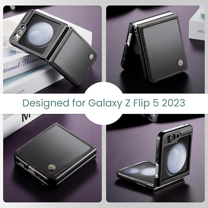 - [Premium Leather] This Samsung Galaxy Z Flip5 case crafted from high-quality PU Leather, feels good in hand.Good quality and great looking case.
