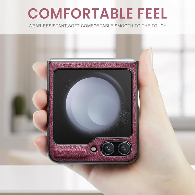 - [Fully Protection] This case is made from premium PU leather, providing a comfortable hand feeling and a great impression. The Samsung Galaxy Z Flip 5 leather case covers all corners and provides great dual-layer protection to your smartphone. There are raised bezels around the screen and camera protect your Samsung Z Flip5 from daily scratches.