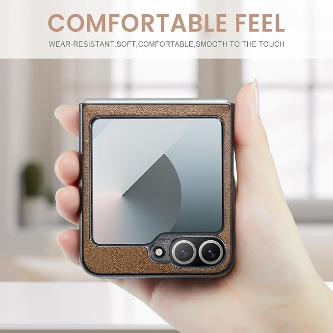 - [Fully Protection] This case is made from premium PU leather, providing a comfortable hand feeling and a great impression. The Samsung Galaxy Z Flip 6 leather case covers all corners and provides great dual-layer protection to your smartphone. There are raised bezels around the screen and camera protect your Samsung Z Flip6 from daily scratches.