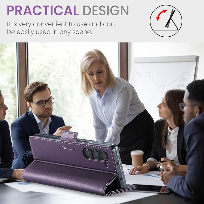 - [Multifunctional] This Samsung Galaxy Z Fold 5 Flip Wallet Leather Case with Adjustable Stand frees up your hands by allowing you to watch videos or movies at the best angle.Whether you're studying,working,exercise or entertainments, this wallet case will meet your needs.