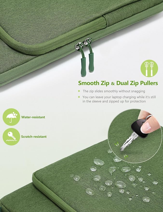 - Superior Multi-Protection: The outermost fabric is water-resistant and wear-resistant, the inner material is 8mm shockproof sponge and soft velvet, with an elasticated fixing strap to hold the laptop in place, perfectly protecting your laptop from spills/scratches/accidental drops. There is also a protective ridge around the perimeter to prevent your laptop from being scratched by zips