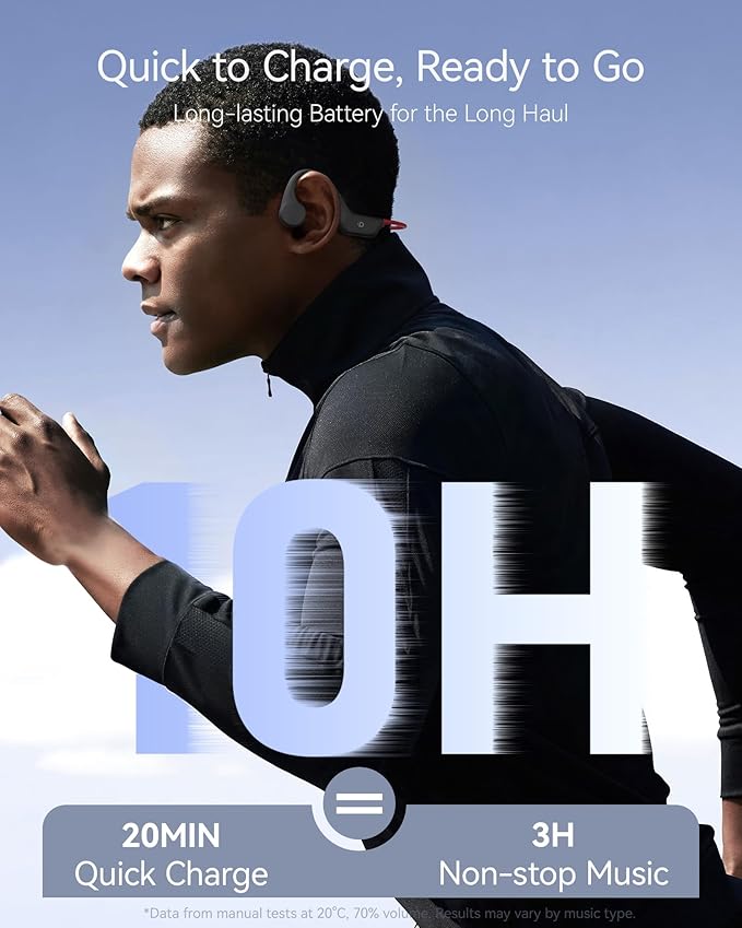 Open Ear Sport Headphones, Soft Silicone Wireless Bone Conduction Earphones, Powerful Bass, 10H Lasting, Multipoint Capable, Quick Charge, Built-in 32GB MP3