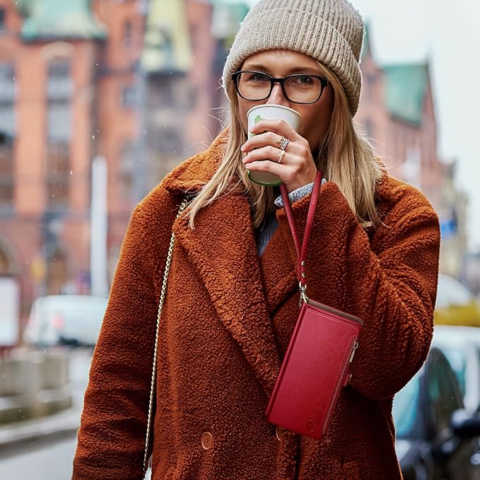 XcaseBar Compatible with Samsung Galaxy S25 Wallet case with Zipper Credit Card Holder【RFID Blocking】,Flip Folio Book PU Leather Phone case Shockproof Cover Women Men for Samsung S25 case Red