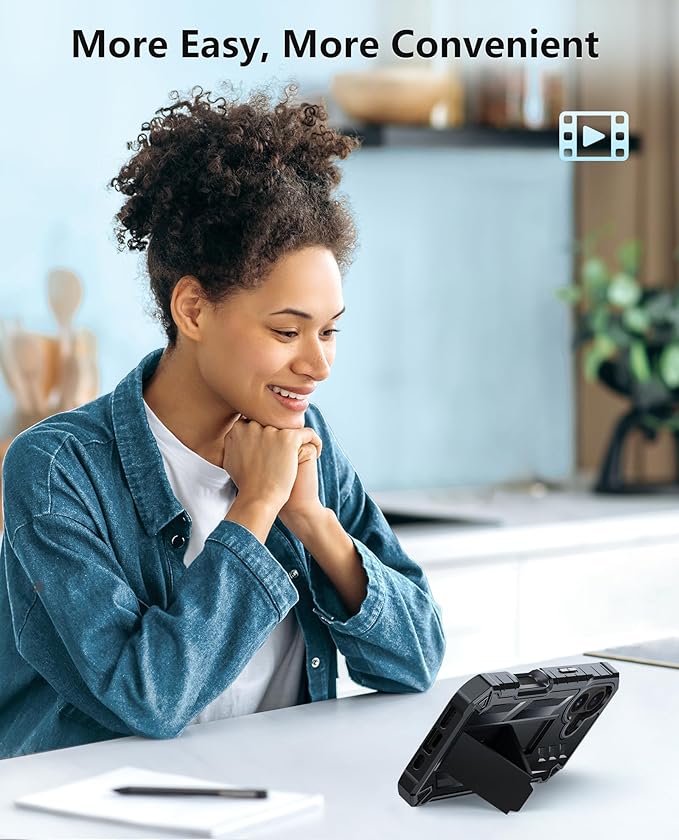 - Built-in Kickstand: Built-in foldable stand with vertical and horizontal viewing angles free your hands to do other things. The holder on the iPhone 16 case back can provide you with good support, making it easy for you to take pictures with a large cell phone