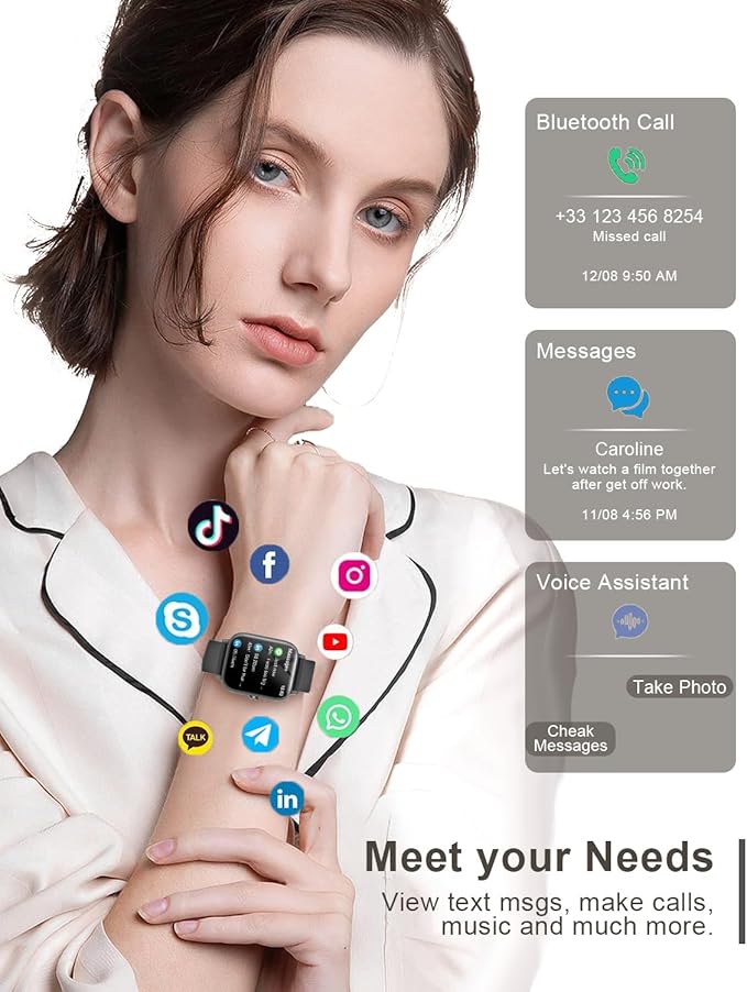- Special Feature : Bluetooth Call Make/Answer, Call/Message Alerts, APPs Notifications,Heart Rate/SpO2/Sleep/Stress Monitor, Female Cycle Tracking, 120+ Sport Modes, Activity Tracker, Fitness Tracker, Sedentary Reminder, Medication Reminder, Sedentary Reminder, Alarm Clock, Time Display, Calendaring, Daily Workout Memory, Music Player, Camera Control, Weather Forecast and so on., Long Battery Life, IP68 Waterproof, 50+ Personalized Watch Faces Bluetooth Call Make/Answer, Call/Message Alerts, APPs Notifications,Heart Rate/SpO2/Sleep/Stress Monitor, Female Cycle Tracking, 120+ Sport Modes, Activity Tracker, Fitness T… See more