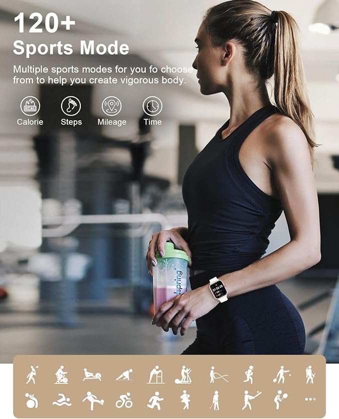 - 【120+Sport Modes and IP68 Waterproof】Achieve your fitness goals with over 120 indoor and outdoor sports modes (snowboarding, running, trail running, cycling, soccer, etc.) tailored to your workout. Fitness watches for women record calories burned, number of steps, training time and distance for a variety of activities. Smart watches for women are also water-resistant up to IP68, so you can train without worry, making it your ideal training partner