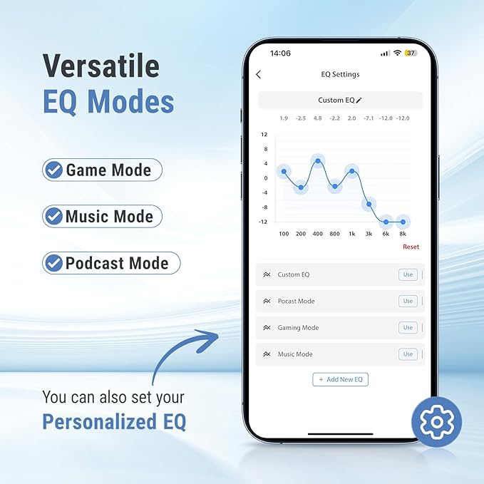 - Multiple EQ Modes and Customizable Settings: Enjoy various EQ modes tailored to different music genres and use cases, or customize your own EQ settings through the dedicated app for a personalized listening experience that enhances both music and calls.