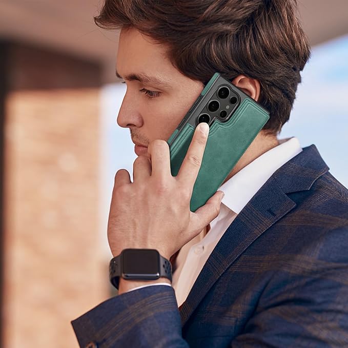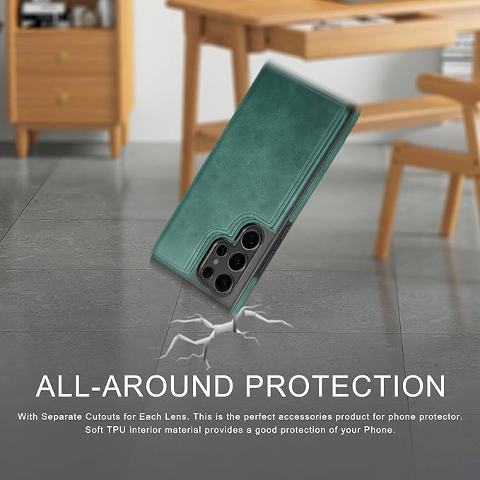 DJDUCK Designed for Samsung Galaxy S25 Ultra Case Wallet with Card Holder, [Magnetic Clasp Cover] [RFID Blocking Leather Protection] Shockproof Women Men Cases for Samsung S25 Ultra Sea Green