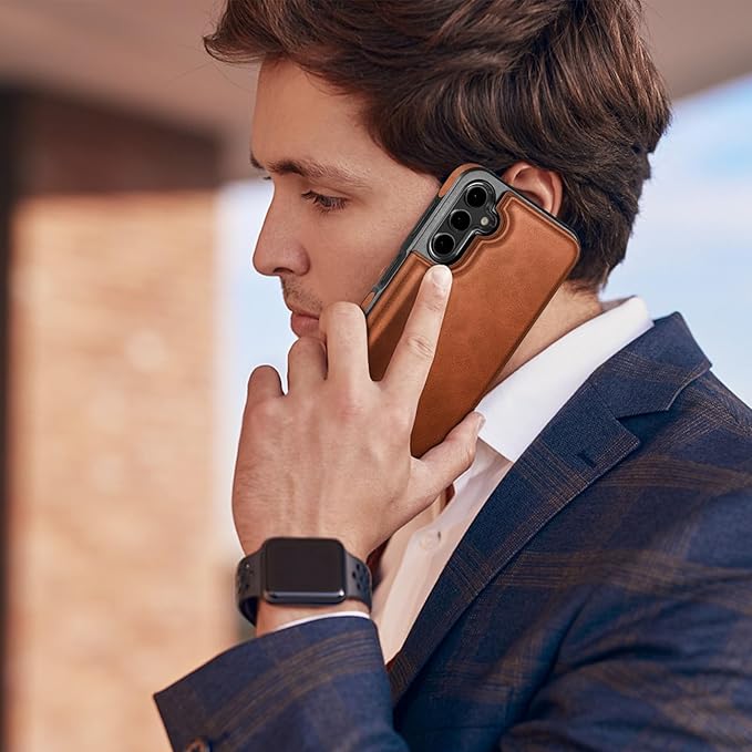 DJDUCK Designed for Samsung Galaxy S25 Case Wallet with Card Holder, [Magnetic Clasp Cover] [RFID Blocking Leather Protection] Shockproof Women Men Cases for Samsung S25 Light Brown