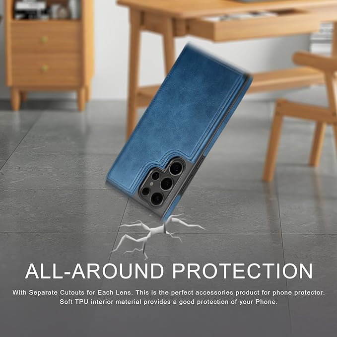 DJDUCK Designed for Samsung Galaxy S25 Ultra Case Wallet with Card Holder, [Magnetic Clasp Cover] [RFID Blocking Leather Protection] Shockproof Women Men Cases for Samsung S25Ultra Bright Blue