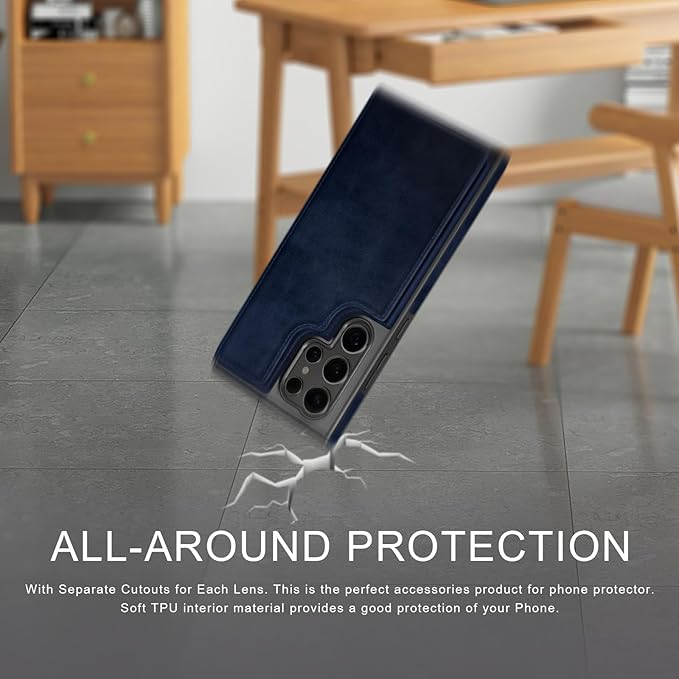 DJDUCK Designed for Samsung Galaxy S25 Ultra Case Wallet with Card Holder, [Magnetic Clasp Cover] [RFID Blocking Leather Protection] Shockproof Women Men Cases for Samsung S25 Ultra Dark Blue