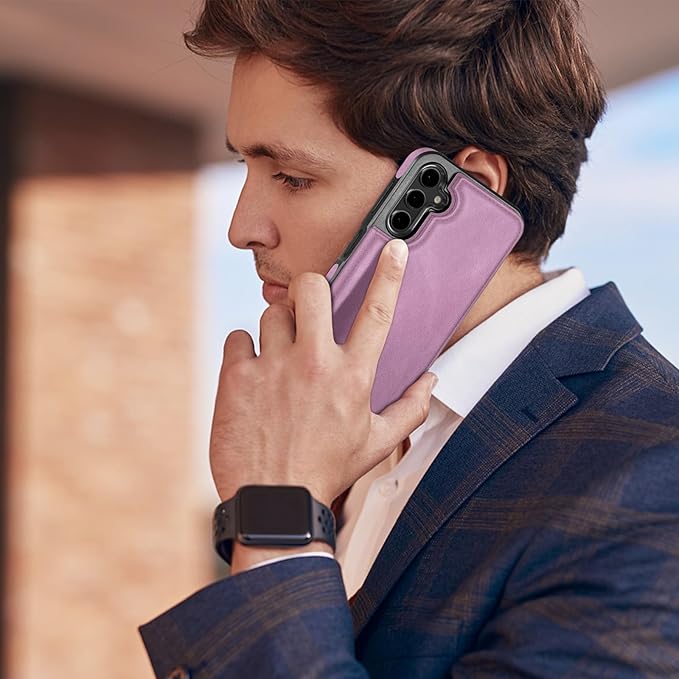DJDUCK Designed for Samsung Galaxy S25 Case Wallet with Card Holder, [Magnetic Clasp Cover] [RFID Blocking Leather Protection] Shockproof Women Men Cases for Samsung S25 Light Purple