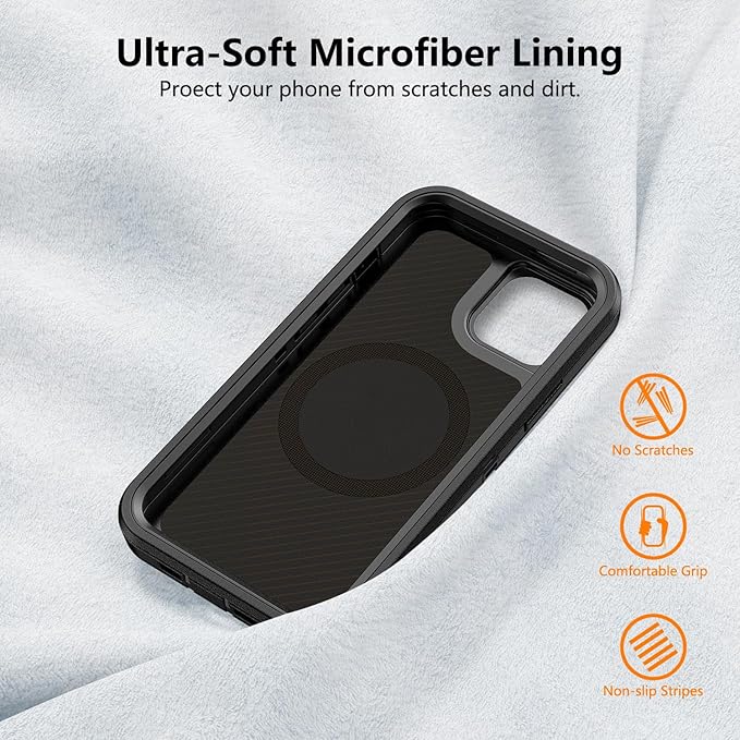 for iPhone 12 & 12 Pro Case with Belt Clip Holster, Anti-Shock, Anti-Slip, Compatible with MagSafe, 3-Layer Drop Protection, Heavy Duty Magnetic Phone Case Cover 12 6.1", Black
