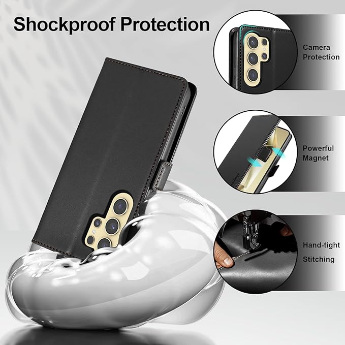 - 【Compatible with Samsung Galaxy S24 Ultra 5G】:This Leather wallet case fits perfectly on the corresponding phone's sensors, buttons and camera. Sensitive keys, smooth fingerprint unlock, clear earpiece. Please make sure your phone is Samsung Galaxy S24 Ultra 5G before purchase.