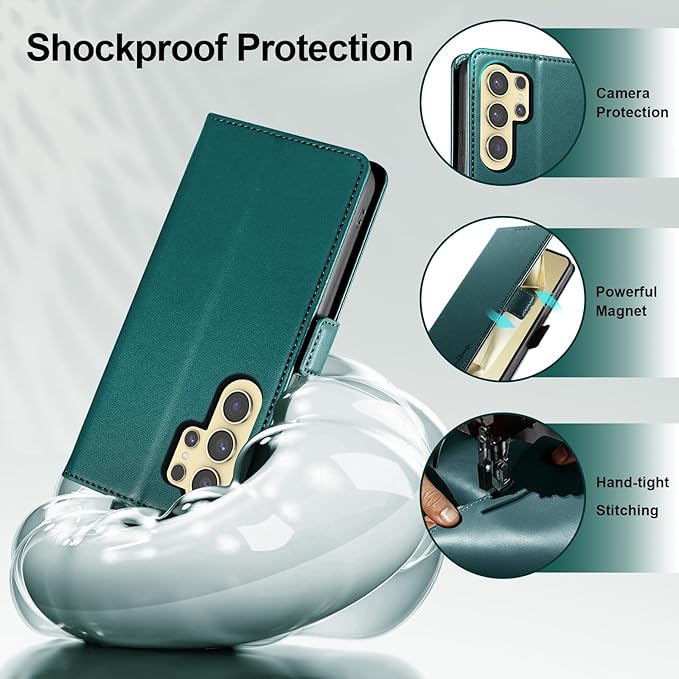 Wallet Flip Case for Samsung Galaxy S24 Ultra 5G - [RFID Blocking] Luxury PU Leather Card Holder Magnetic Phone Cover with Kickstand,Shockproof Protective Case,Green