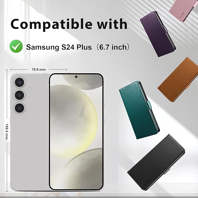 - 【Compatible with Samsung Galaxy S24 Plus/S24+ 5G】:This Leather wallet case fits perfectly on the corresponding phone's sensors, buttons and camera. Sensitive keys, smooth fingerprint unlock, clear earpiece. Please make sure your phone is Samsung Galaxy S24 Plus/S24+ 5G before purchase.