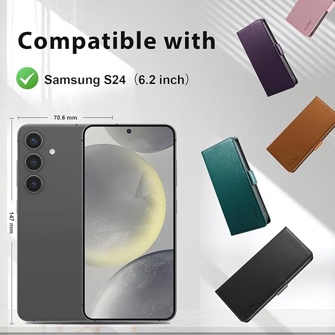 - 【Compatible with Samsung Galaxy S24 5G】:This Leather wallet case fits perfectly on the corresponding phone's sensors, buttons and camera. Sensitive keys, smooth fingerprint unlock, clear earpiece. Please make sure your phone is Samsung Galaxy S24 5G before purchase.