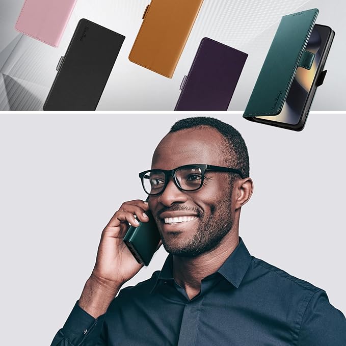 - 【High Quality Leather】: Made of the finest quality PU leather texture, superb cutting process with craftsmen's pure hand sewing to create the Leather Wallet Phone Case. Premium smooth fine grain pattern surface does not stick fingerprints, easy to clean, wear-resistant . Shockproof, dustproof, perfect protection for cell phone body and screen. Luxurious and elegant appearance suitable for any occasion and good safety cushioning performance.