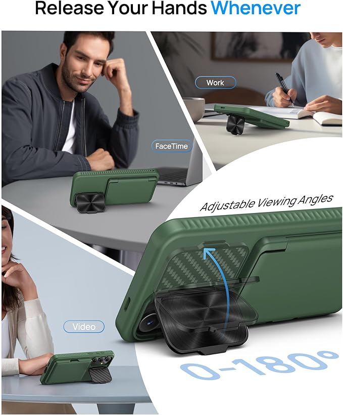 - ✅[Ready! Flexible 180° Camera Stand] SIXBOX's new Samsung Galaxy S24 Fe phone case design combines aesthetics, protection, and convenience, not only a camera cover, but also a kickstand. 0-180° rotation cover by over 30,000 strict fold tests for long-lasting durability. This powerful and stable Galaxy s24 Fe stand allows you to release your hands anytime, anywhere, and enjoy every moment of viewing from any angle, both horizontally and vertically
