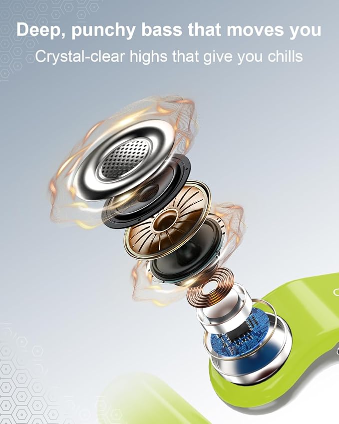 - Premium Audio Experience - Our OWS earbuds 13.2mm dynamic drivers deliver crystal-clear mids and highs with a deeper, richer bass for an rich listening experience. OJW open ear hooks headphones dual ENC microphones reduce ambient noise by 90% for crystal-clear calls even in windy conditions.