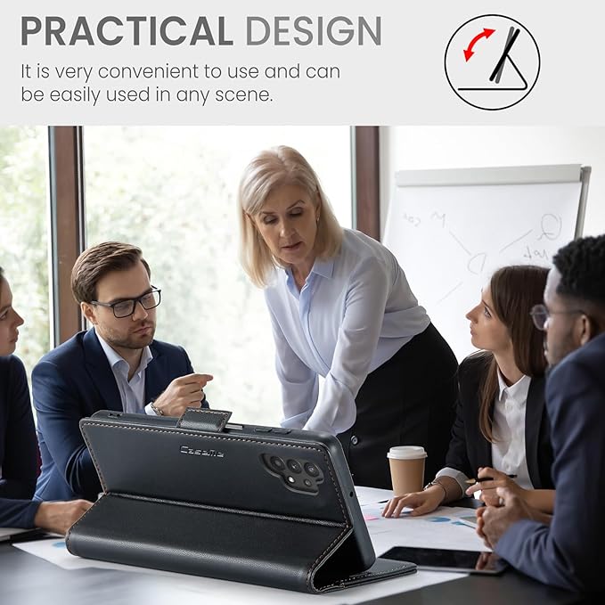 - [Multifunctional] This Samsung Galaxy A32 5G Flip Wallet Leather Case with Adjustable Stand frees up your hands by allowing you to watch videos or movies at the best angle.Whether you're studying,working,exercise or entertainments, this wallet case will meet your needs.