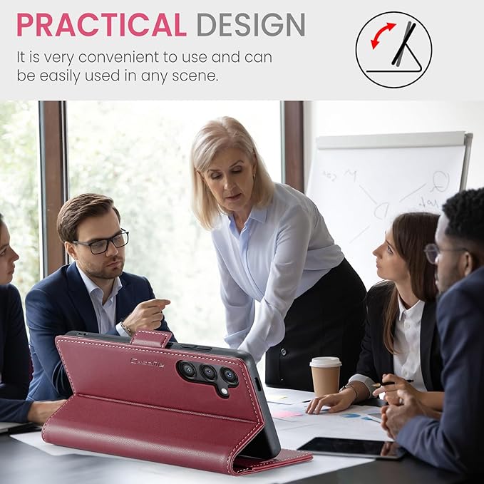- [Multifunctional] This Samsung Galaxy S24 FE Flip Wallet Leather Case with Adjustable Stand frees up your hands by allowing you to watch videos or movies at the best angle.Whether you're studying,working,exercise or entertainments, this wallet case will meet your needs.