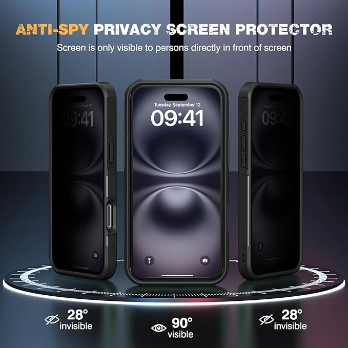 - 【4-in-1 360°Full Protection】 Case for iPhone 16 Plus with 9H Privacy Tempered Glass Screen Protector can protect your phone screen from scratch and broken. 2-Layer structure (the flexible rubber inner cover and hard PC back cover) provides 360 degree full body rugged protection.